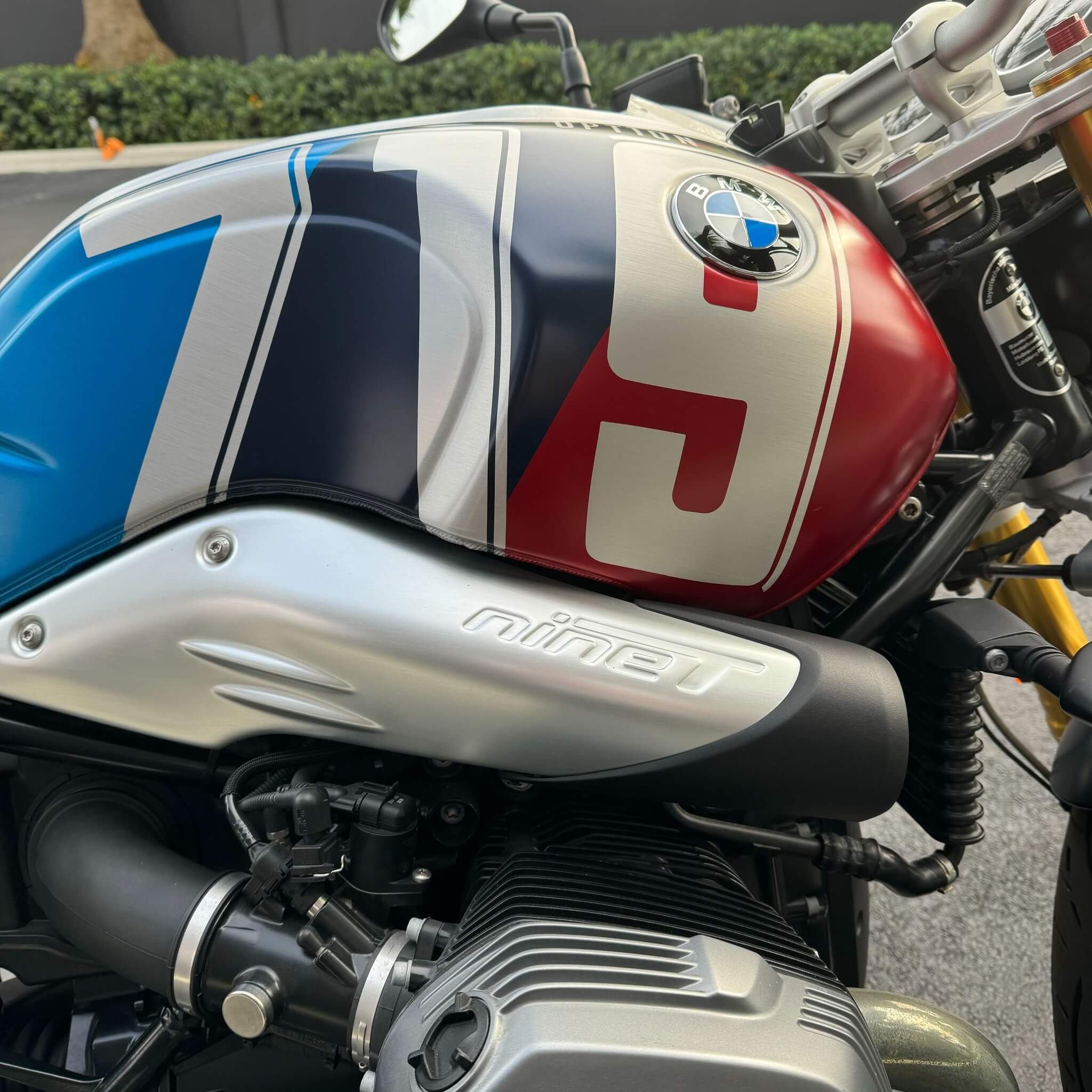 Finie en Mars Crimson/Cosmic Blue, cette R nineT particulière avec l’choice 719 arbore l’emblème distinctif « 719 » en blanc sur le réservoir de carburant. La personnalisation s’étend à un ensemble de pièces fraisées fabriquées par BMW Motorrad Spezial, renforçant le caractère distinctive de la moto. Roulant sur des pneus Metzeler, il est doté d’une selle distinctive en cuir noir avec des surpiqûres contrastées blanches pour le confort du pilote. La double instrumentation située devant le guidon prend en cost les doubles rétroviseurs, complétant l’esthétique élégante et personnalisée de la moto.